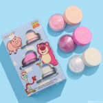 Las sombras en gel Jelly Much incluyen tres tonos: It’s Forky (blanco gélido con perlas arcoíris), Hamm It Up (rosa bebé con perlas doradas y violetas) y Beary Good Vibes (violeta rosado con destellos dorados y plateados). Cada tapa presenta la imagen de Forky, Hamm y Lotso.
