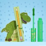 La máscara de pestañas BFF Volumizing Mascara ahora está disponible en un tono verde brillante inspirado en las escamas de Rex. El empaque incluye un contorno dorado del simpático dinosaurio.